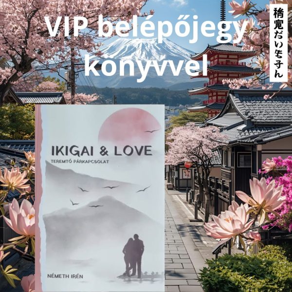 A varázslatos japán utibeszámoló rendezvényre szóló VIP jegy ára tartalmazza az Ikigai & Love könyvet is, így nemcsak a japán utazás élményeit élheted át, de hazaviheted a teremtő párkapcsolatról szóló személyes útmutatót is.